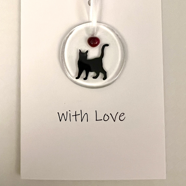 Black Cat Fused Glass Card