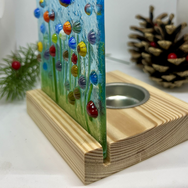 Flower Meadow Fused Glass Tealight