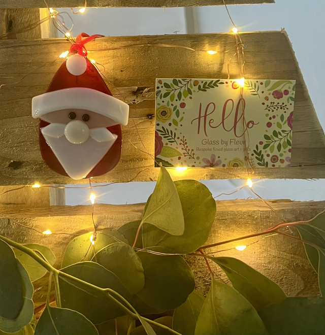 Lovingly made from hand-cut sheet glass and enamel, each Santa goes through multiple 24-hour kiln firings for a beautiful, lasting finish. They’re completed with nichrome wire and a decorative ribbon, ready to hang on your tree.